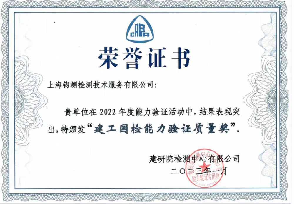 2023年4月23日上海鈞測(cè)受邀參加上海市建設(shè)工程檢測(cè)行業(yè)協(xié)會(huì)第五屆會(huì)員代表大會(huì)。會(huì)議中公布了“檢測(cè)獎(jiǎng)-年度檢測(cè)先進(jìn)工作···